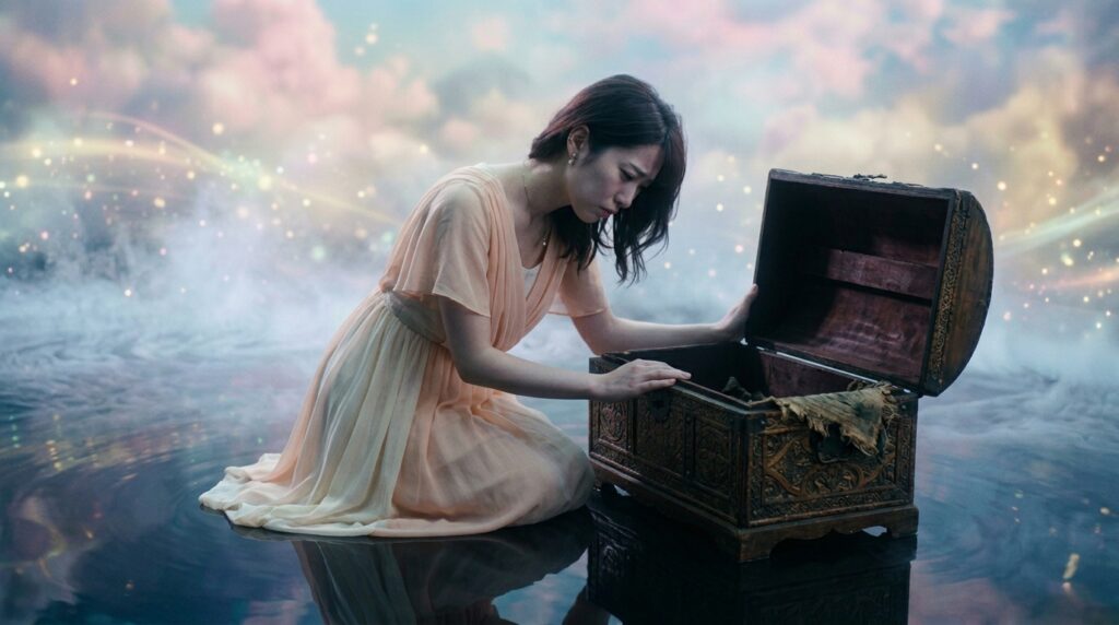 ここで重要なのは、開けた後に中身が何であったかが、夢の吉凶を大きく左右するという点です。美しい宝石や金貨が入っていれば幸運の暗示ですが、空っぽだったり期待外れのものが入っていたりした場合は、それとは異なる意味が加わってきます。