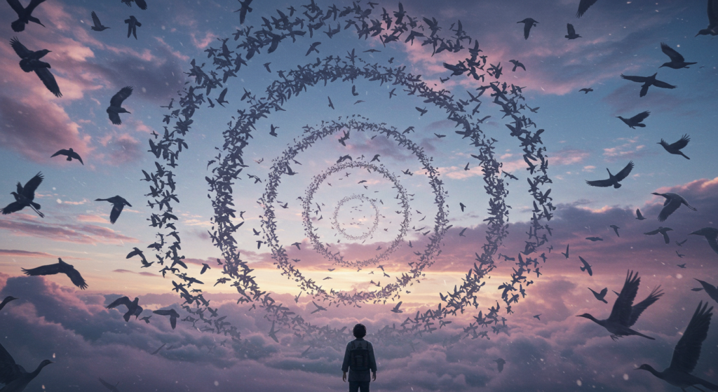 鳥の大群に囲まれて圧倒される夢は、深いスピリチュアルな意味を持ち、魂の成長と覚醒に関する重要なメッセージを含んでいます。この夢は単なる予知夢を超えて、あなたの精神的な進化における重要な段階を表している可能性があります。